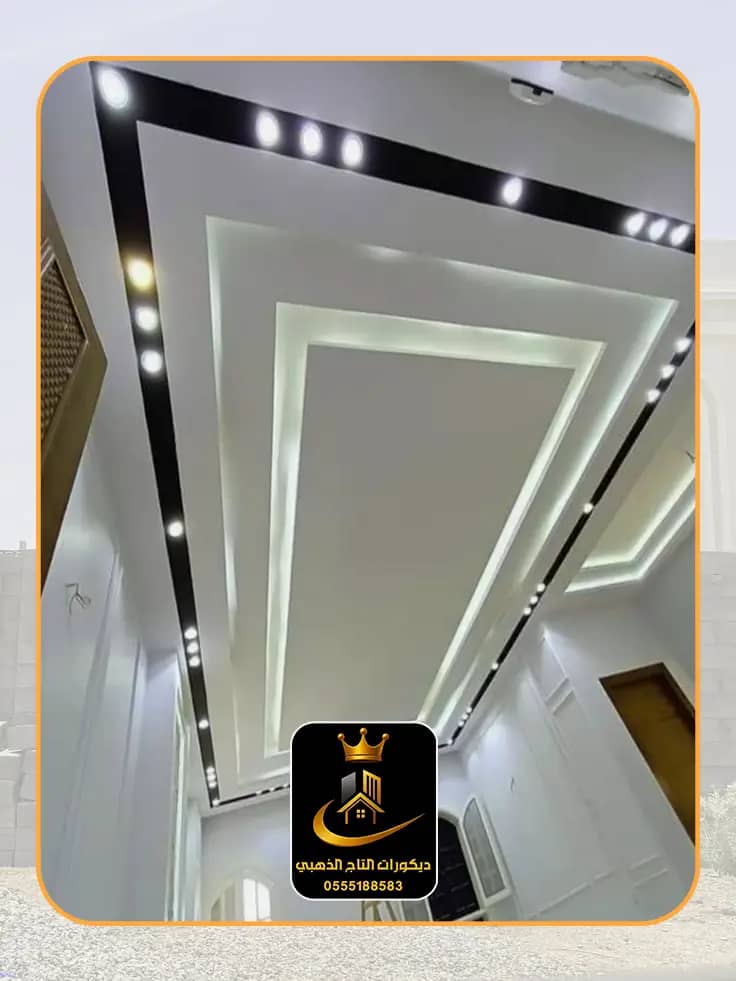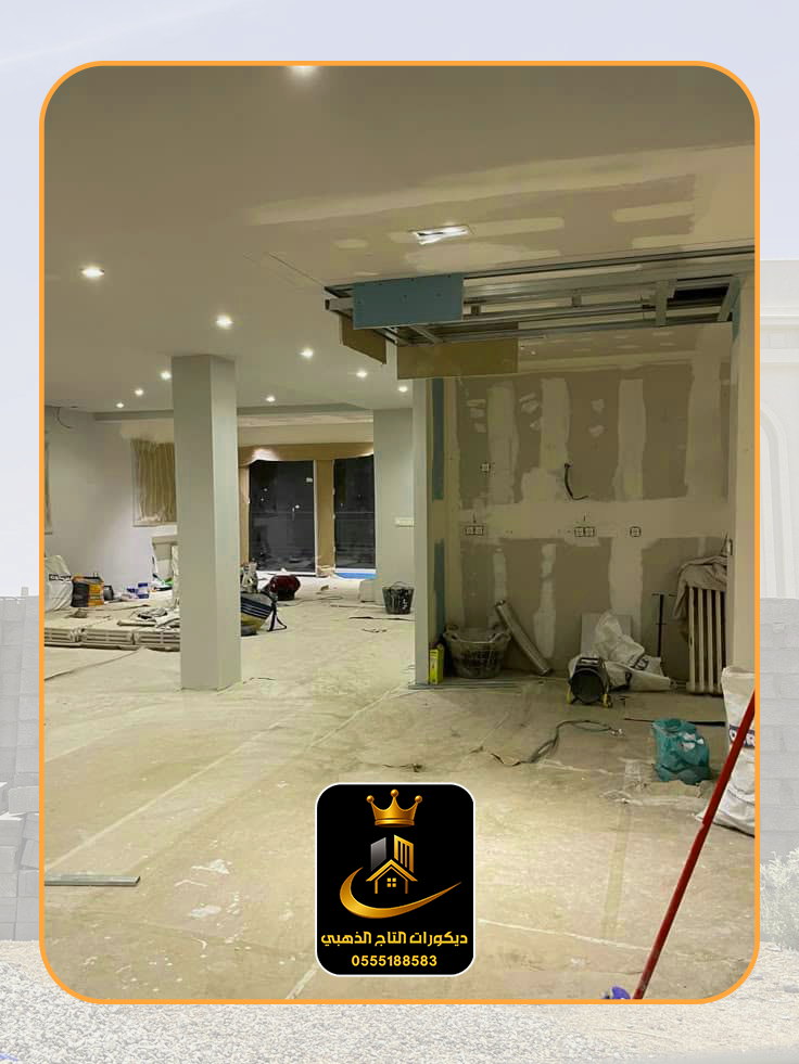 تنفيذ أسقف جبس بورد (جبسمبورد): بتصاميم مبتكرة وكلاسيكية، مع إمكانية دمج الإضاءة المخفية والمباشرة ✨.