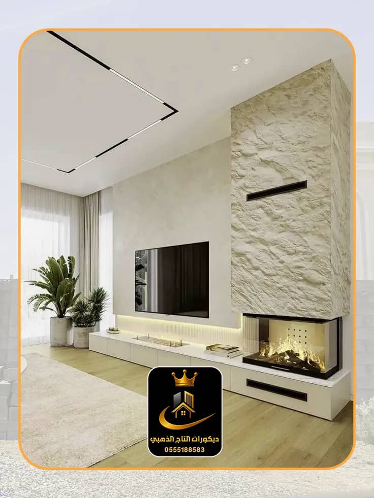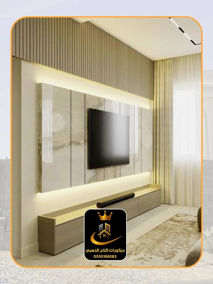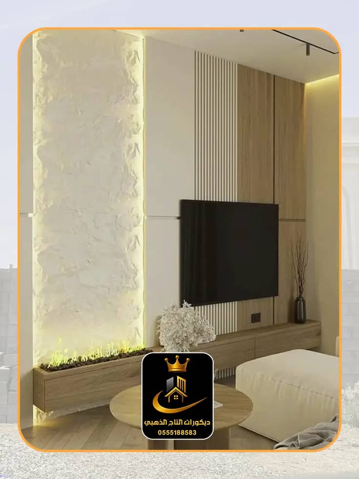 تصميم وتنفيذ ديكورات فريدة: لشاشات التلفاز 📺، المداخل الفخمة، والأرفف العصرية.